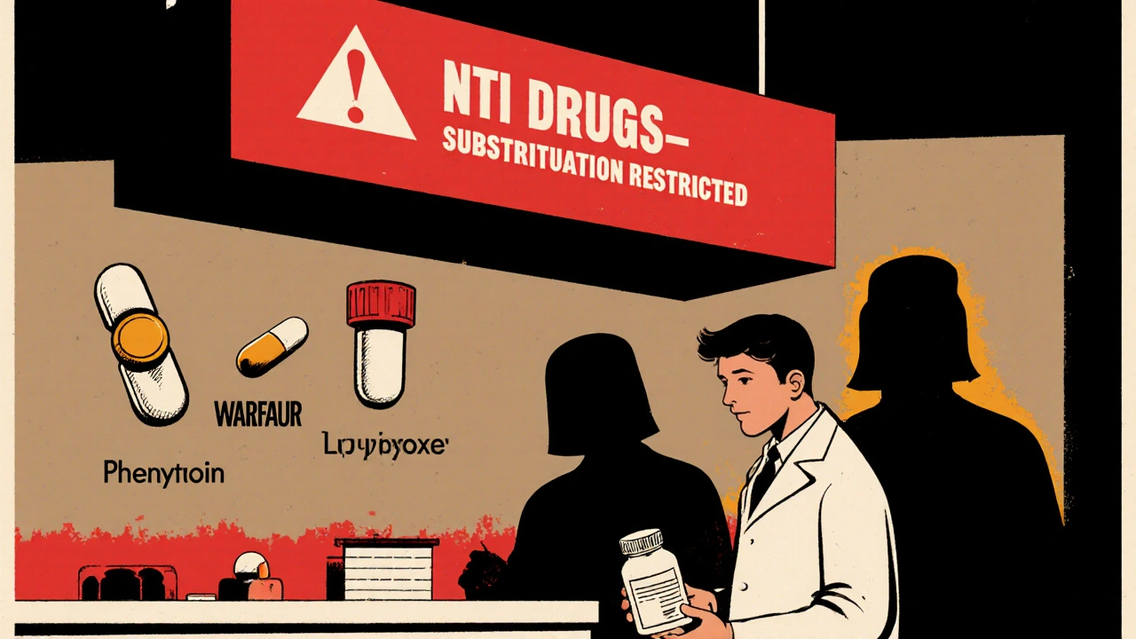 Pharmacy substitution means a pharmacist swaps a brand-name drug for a generic or biosimilar version without contacting your doctor first. This isn’t just about saving a few bucks-it’s a system designed to cut U.S. drug spending by billions. Generic drugs cost 80-85% less than their brand-name counterparts, according to the FDA. In 2023, generics made up 90% of all prescriptions filled in the U.S. but only 23% of total drug spending. That’s a $313 billion annual savings. But not all drugs are created equal. For most pills-like statins, blood pressure meds, or antibiotics-generics work just as well. The FDA requires them to have the same active ingredient, strength, dosage form, and route of administration. They’re tested to ensure they deliver the same effect in the body. Where things get tricky is with drugs that have a narrow therapeutic index (NTI). These are medications where even tiny differences in how the body absorbs the drug can cause serious side effects or make the treatment fail. Examples include warfarin (a blood thinner), phenytoin (for seizures), and levothyroxine (for thyroid issues). Some states ban substitution for these drugs entirely. Others allow it-but only with extra steps.How Your State Handles Substitution: Mandatory, Permissive, or Restrictive
