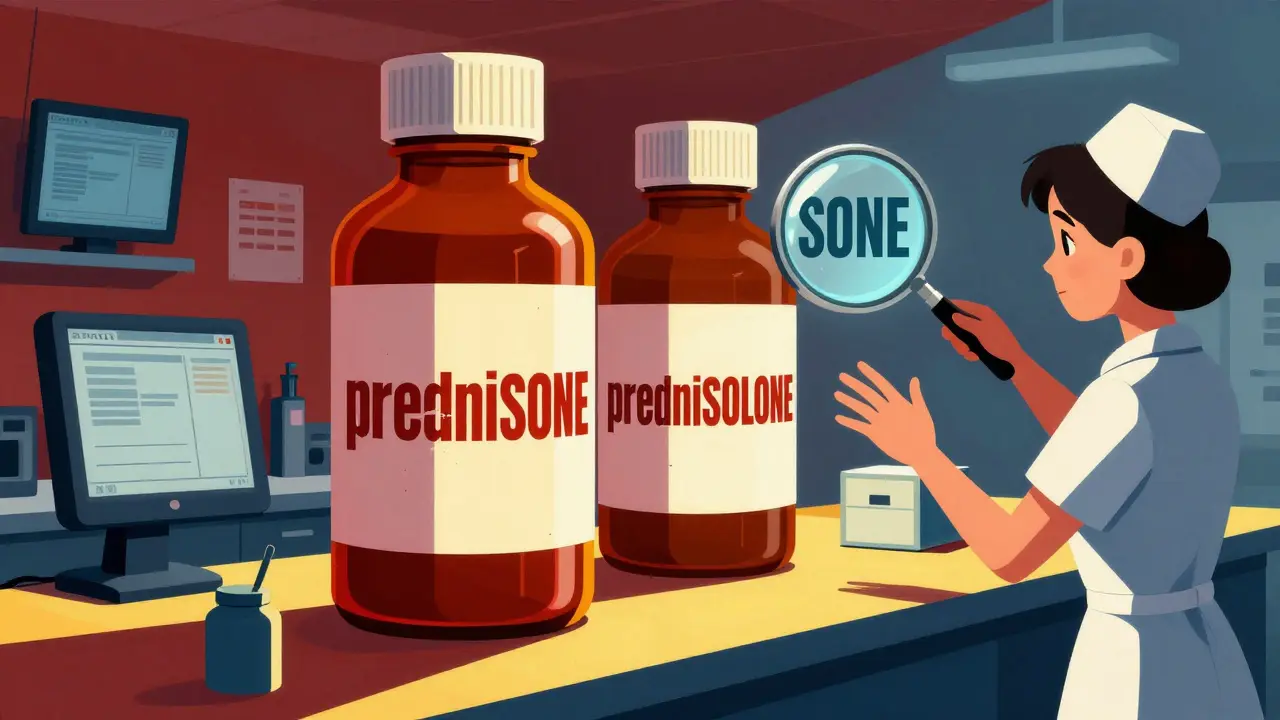 Tall-man lettering isn’t fancy design. It’s not about making drug names look cool. It’s about making them impossible to confuse. Take prednisone and prednisolone. They sound nearly identical. In a busy ER, under pressure, a nurse might grab the wrong one. But when you write it as predniSONE and predniSOLONE, your eyes catch the difference instantly. The capitalized letters - SONE vs. SOLONE - jump out. That’s the whole point. This technique uses selective capitalization to highlight the parts of drug names that differ. It’s not random. The FDA and the Institute for Safe Medication Practices (ISMP) have studied thousands of look-alike, sound-alike (LASA) drug pairs and decided exactly where to capitalize. For example:- vinBLAStine vs. vinCRIStine